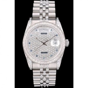 Rolex DayDate Diamond Plated Stainless Acciaio Bracelet Diamond Plated Dial 41985