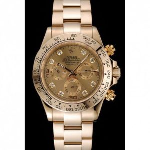 Rolex Cosmograph Daytona Brown Dial Diamond Numerals Gold Case And Bracelet 1454245