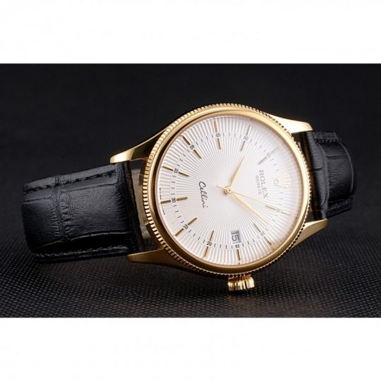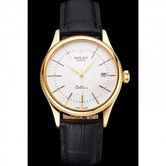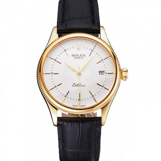 Rolex Cellini Date White Dial Gold Case Nero Leather Strap