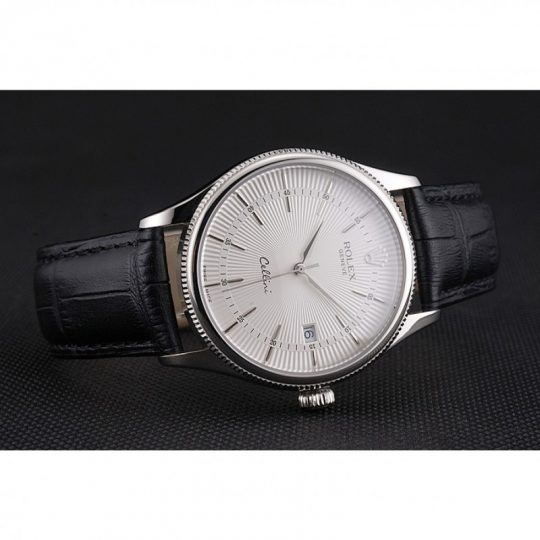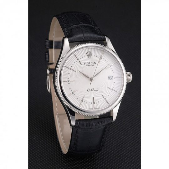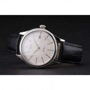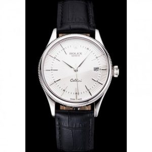 Rolex Cellini Date White Dial Stainless Acciaio Case Nero Leather Strap