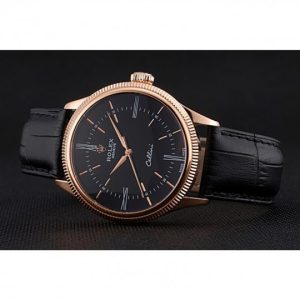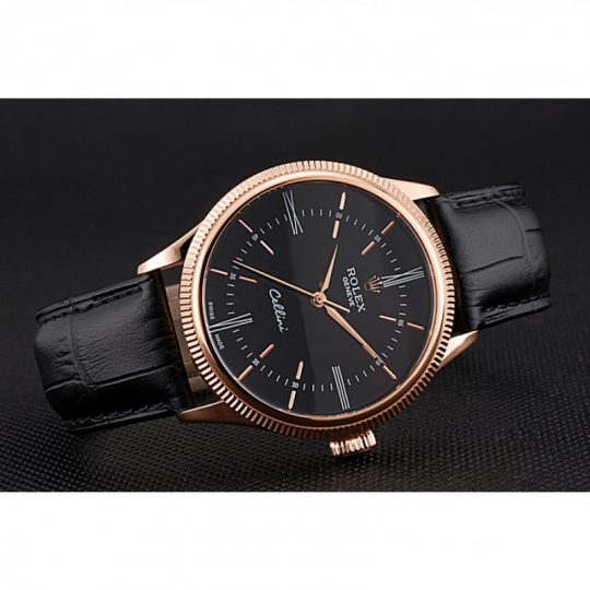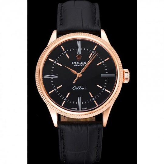 Rolex Cellini Time Rose Gold Case Nero Dial Nero Leather Bracelet 622656