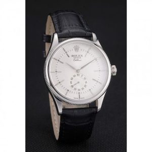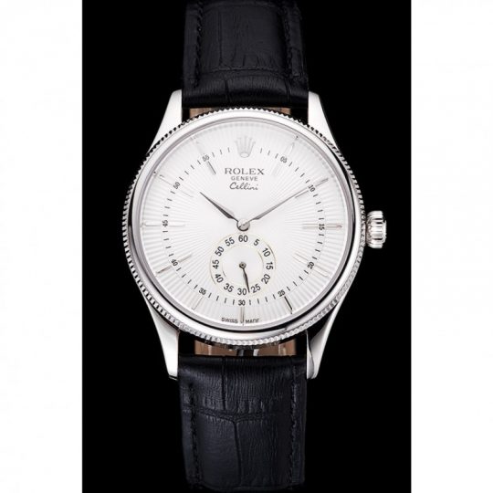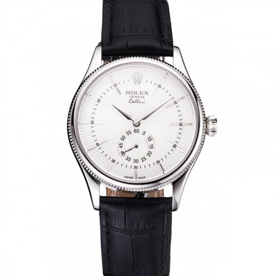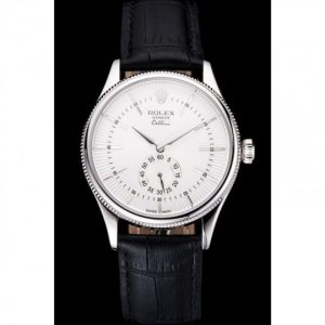 Rolex Cellini White Dial Stainless Acciaio Case Nero Leather Strap
