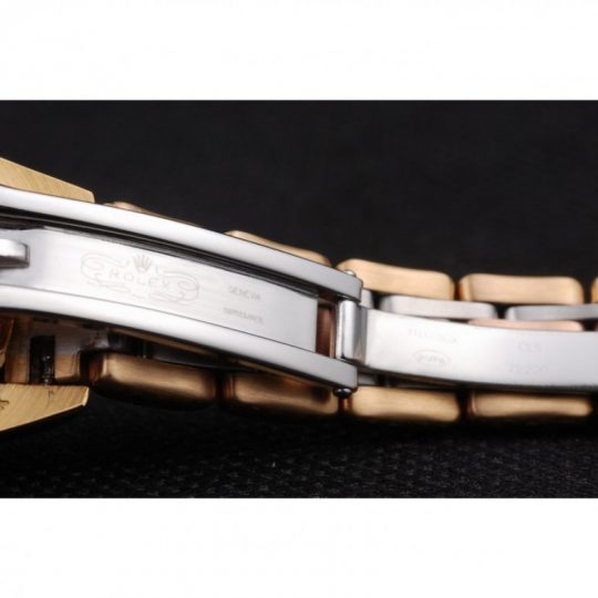 | BRACELET | Two toned fancy link bracelet in 18k rose-gold plated stainless Acciaio and polished stainless Acciaio with Rolex engraving hidden clasp displaying the Rolex logo |