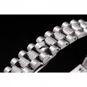 | BRACELET | Diamond encrusted polished stainless Acciaio link bracelet with cutwork Rolex logo deployment clasp |