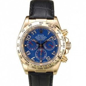 | BRACELET | Rolex heat embossed Nero crocodile leather strap with engraved yellow gold deployment clasp with Rolex logo on top |