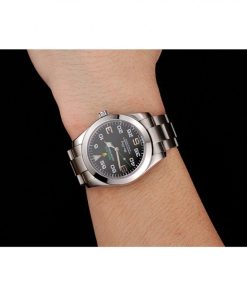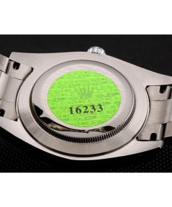 | BACK | Polished stainless Acciaio snap in back with green Rolex authenticity sticker |