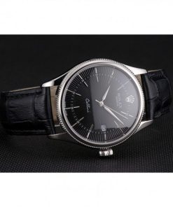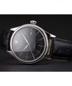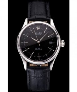 Rolex Cellini Date Nero Dial Stainless Acciaio Case Nero Leather Strap