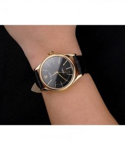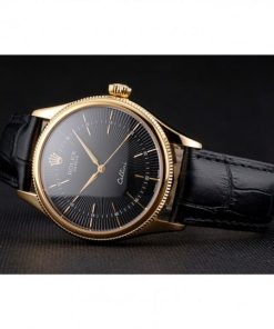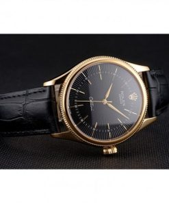 Rolex Cellini Nero Dial Gold Markings Gold Case Nero Leather Strap