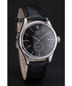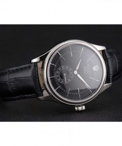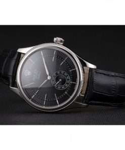 Rolex Cellini Nero Dial Stainless Acciaio Case Nero Leather Strap