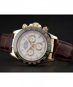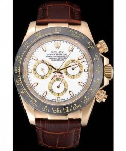 Rolex Cosmograph Daytona Gold Case White Dial Cuoio marrone Bracelet 622633