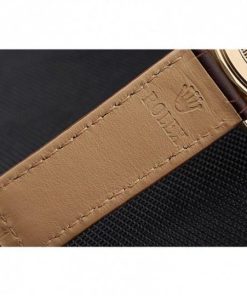 | BRACELET | Logo and Rolex heat embossed brown crocodile leather strap with logo carved 18k gold plated deployment clasp |