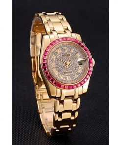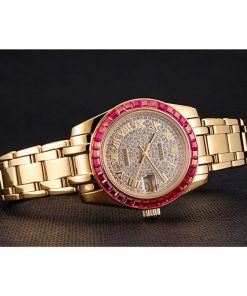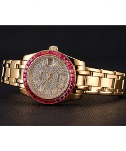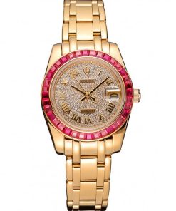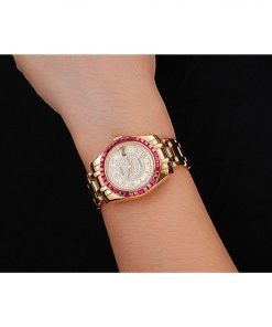 Rolex Datejust Diamond Dial Pink Jewels Bezel Gold Case And Bracelet 622835