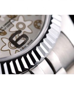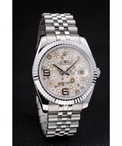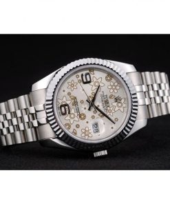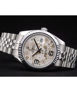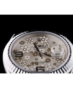 Rolex DateJust Stainless Acciaio Ribbed Bezel Flower Argento Dial 41983
