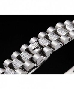 | BRACELET | Diamond encrusted polished stainless Acciaio link bracelet with cutwork Rolex logo deployment clasp |