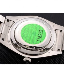 | BACK | Polished stainless Acciaio snap-in back with Rolex green authenticity sticker |